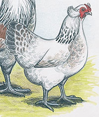 | This unusual breeds gets its name from the indian tribe of chile where they were first discovered. Araucanas lay beautiful colored eggs of blu-green shades from turquoise to deep olive. These natural easter Eggs will amaze your friends and make a great "Show to tell" project for school. Baby chicks come in all colors. They are recommended for egg laying color and ability and not for exhibition. |