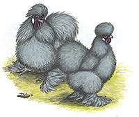 | Both china & japan claim the origin of these unique bantams and historians have traced them back to marco polo. their black skin and white feathers that feels much like hair make them one of our most unusal varieties of chickens. Our silkies come both bearded and non-bearded and are tremendous setters on all types of eggs. |