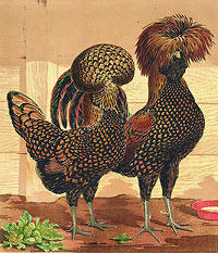The mature Golden polish represent a sticking contrast in color with their body plumage. they are very ornamental and extremely rare breed. they stand cold weather very well. they make a fine eating bird.